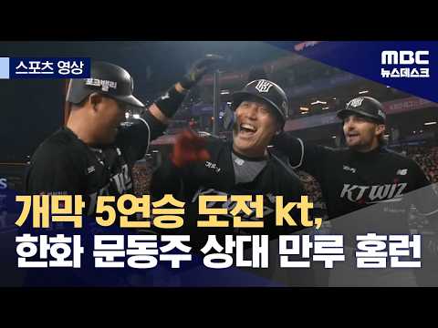 프로야구 kt가 한화 강속구 투수 문동주를 상대로 개막 5연승에 도전하고 있는데요.