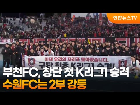 프로축구 부천FC가 창단 이래 처음으로 1부 리그, K리그1(원)으로 향하게 됐습니다. 승강 플레이오프에서 수원FC를 잡고 창단 18년 만에 1부 승격을 일궈냈습니다.