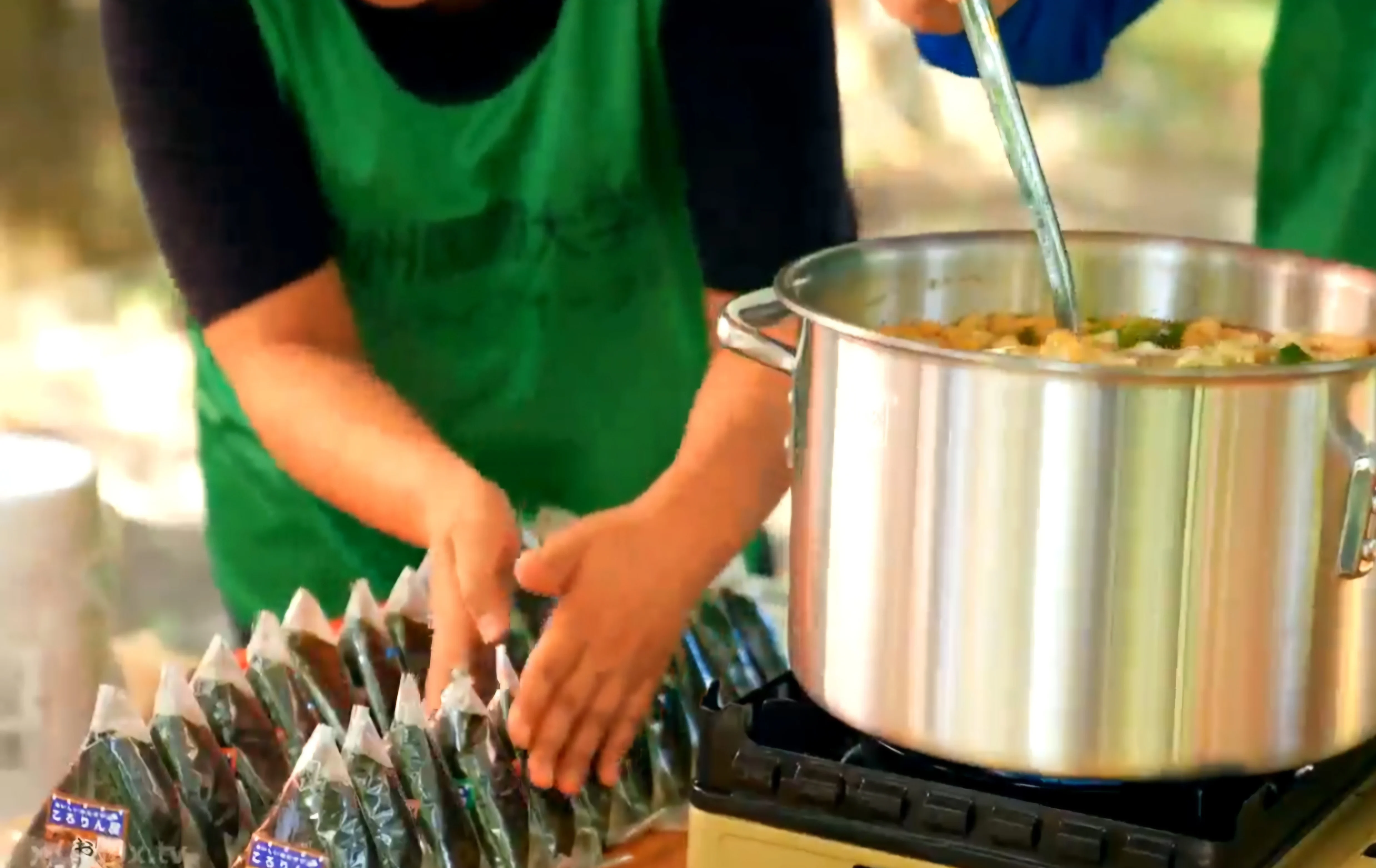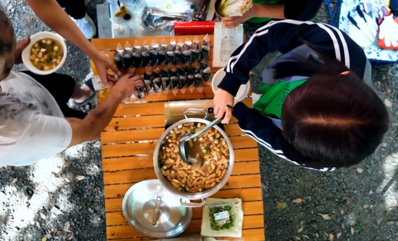 이렇게 먹음직스런 음식들을 차려놓고 어떤 봉사를 하려는 걸까?