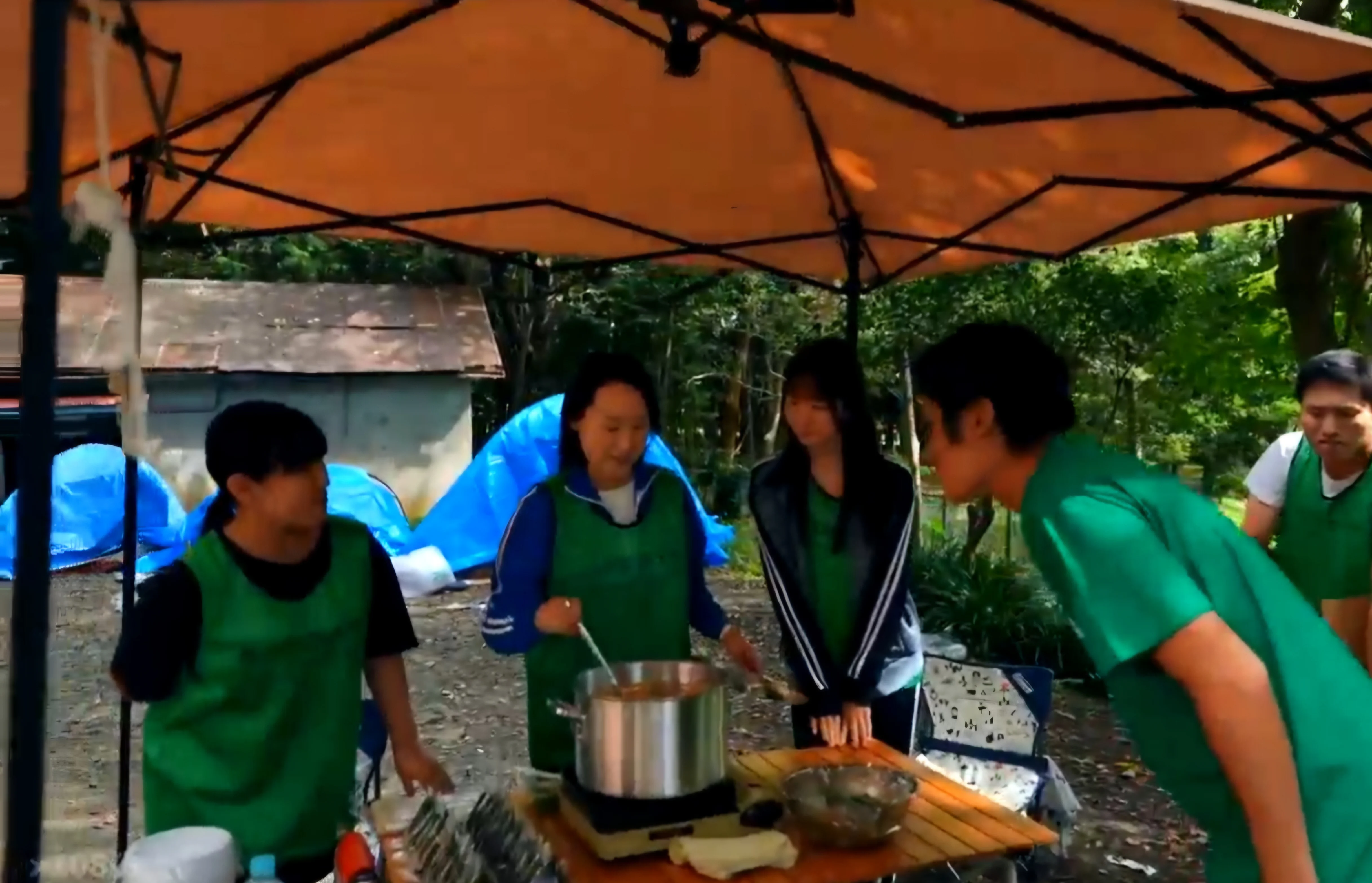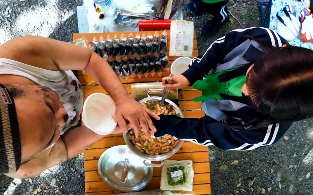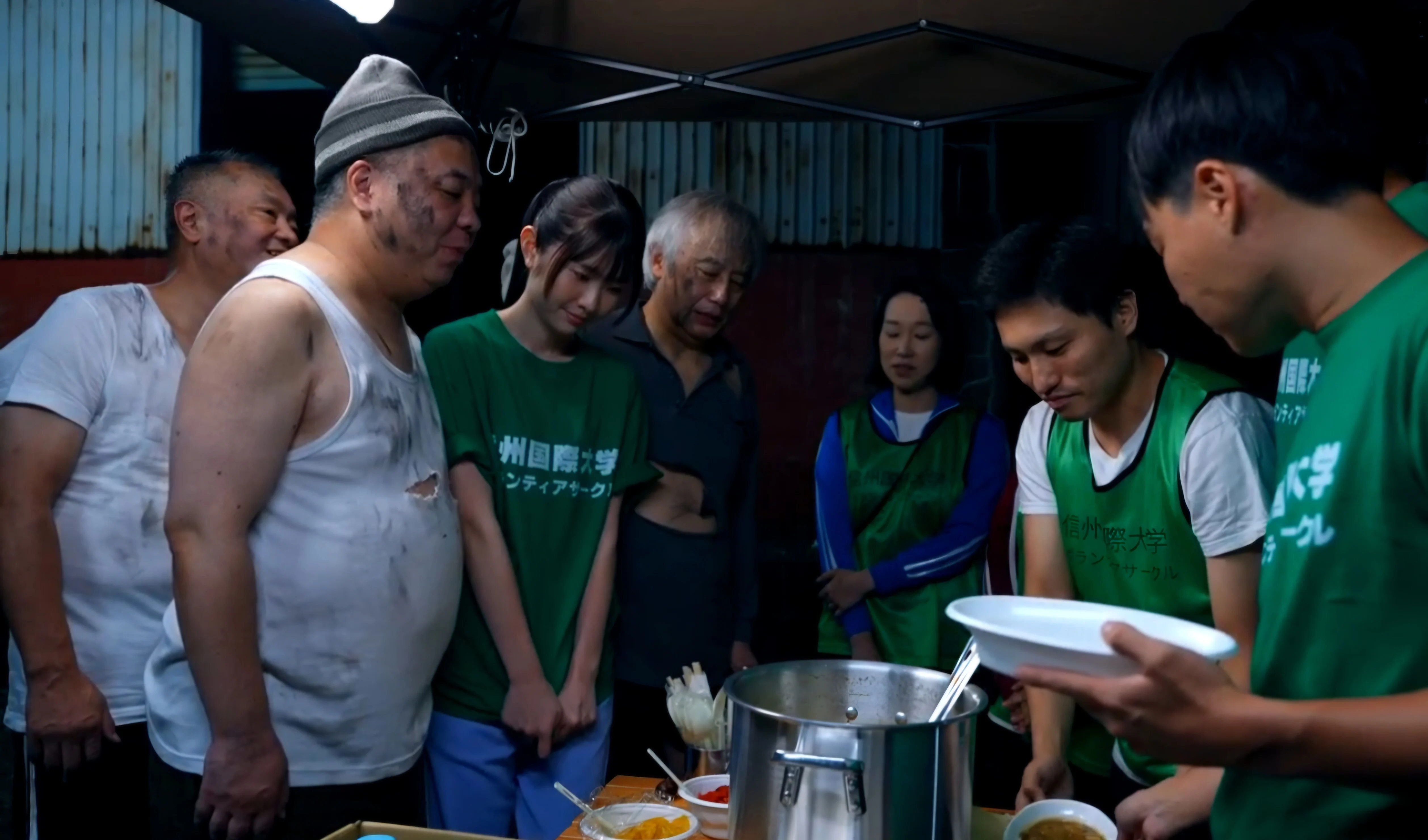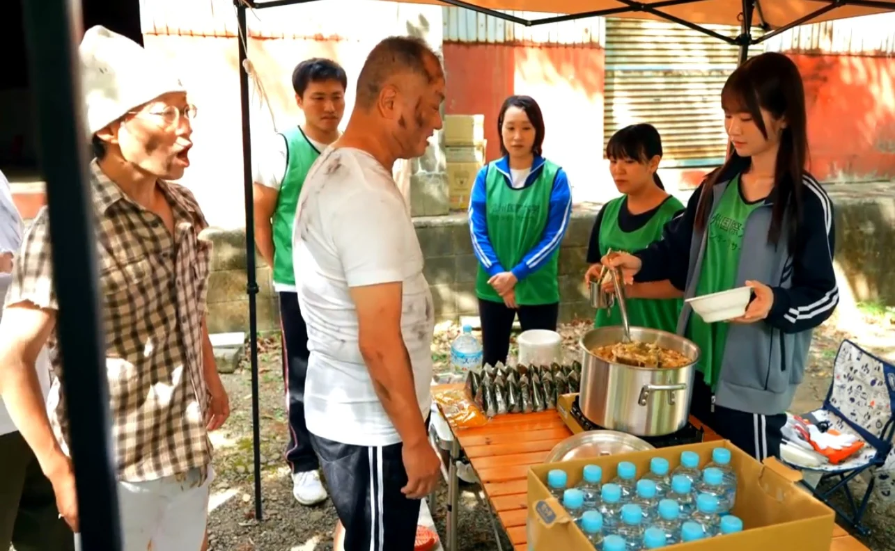 드디어 시작된 배식 시간. 오랜만에 따뜻한 밥과 국을 눈앞에 둬서 그런지 기분이 좋아보이는 아재들이다.