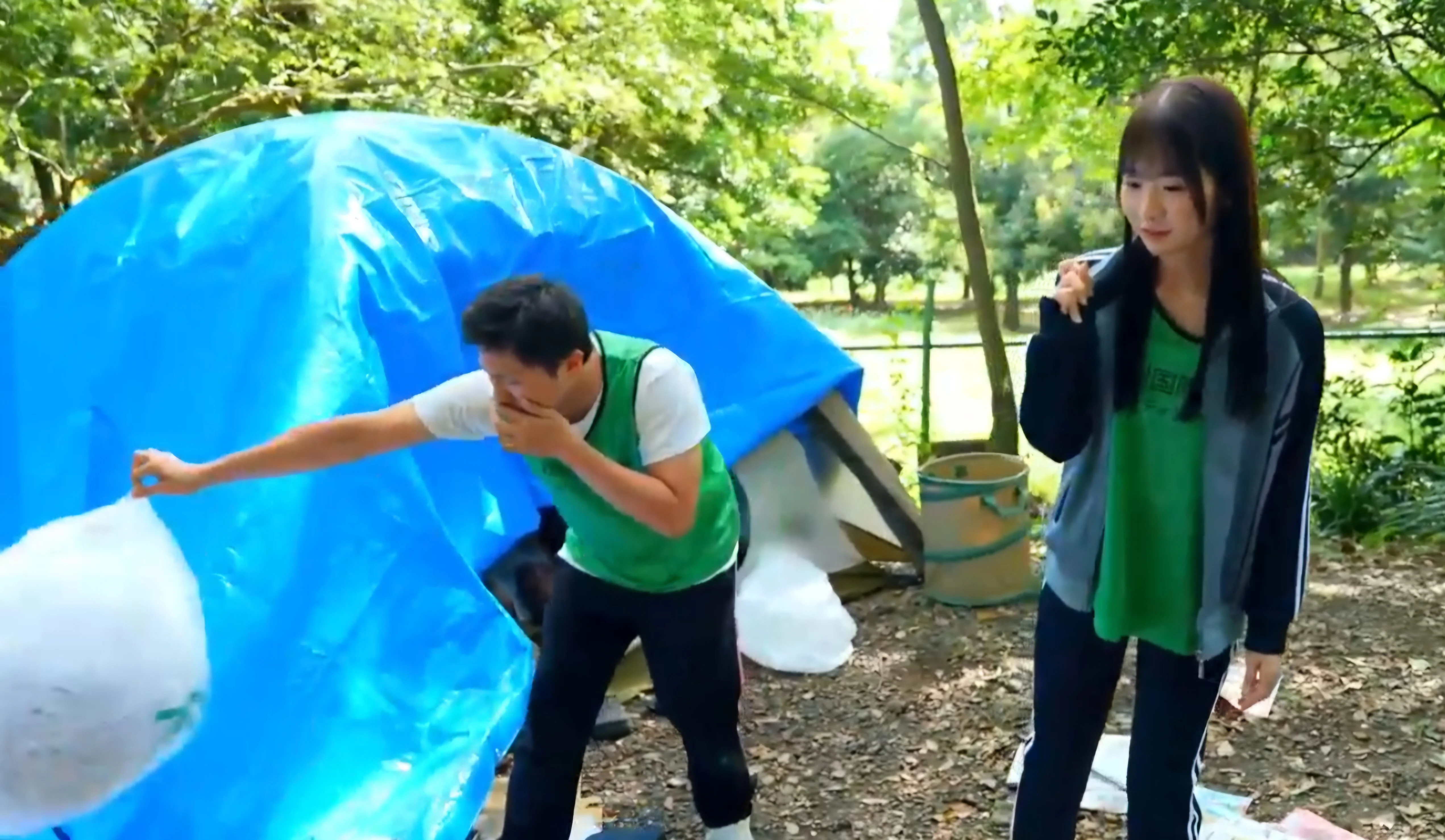 좆같다는 듯이 쓰레기 더미를 던져버리는 센빠이