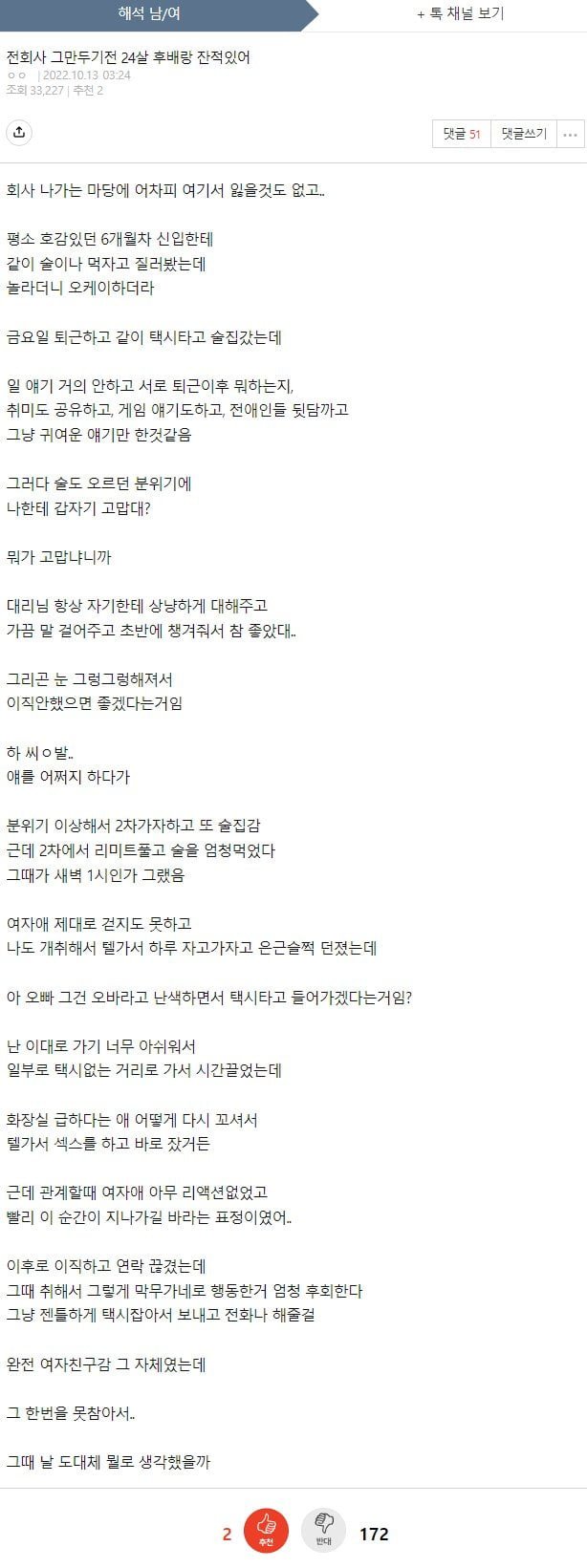 여자후배랑 ㅅㅅ한걸 후회한다는 남자