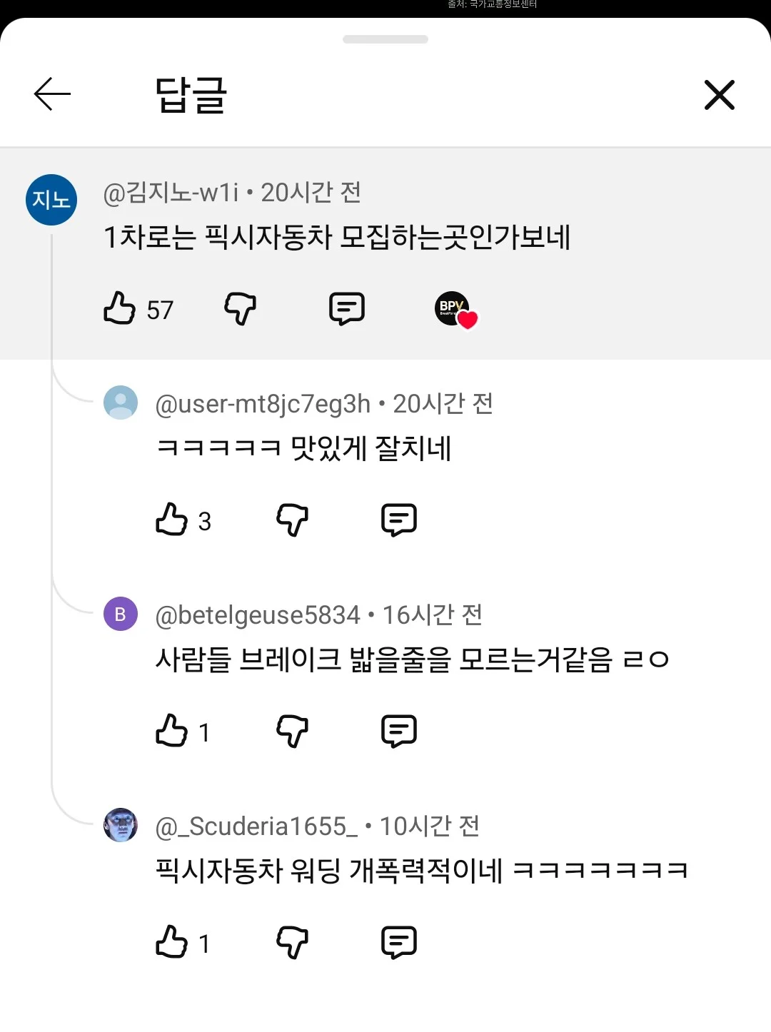 하위차로 비어있어도 무조건 1차로에서 지속주행하는 차량이 많아서 정체구간마다 저런 그림 나오더라