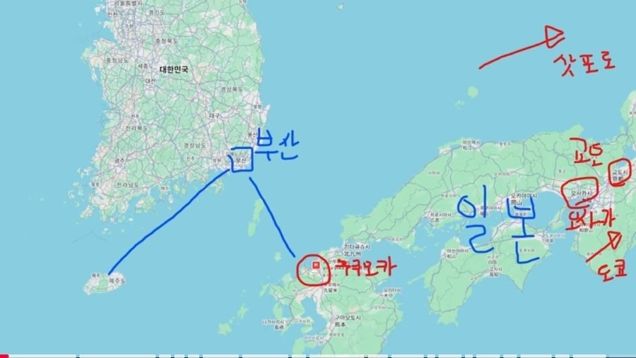 부산에서 후쿠오카가 더 가깝다네요