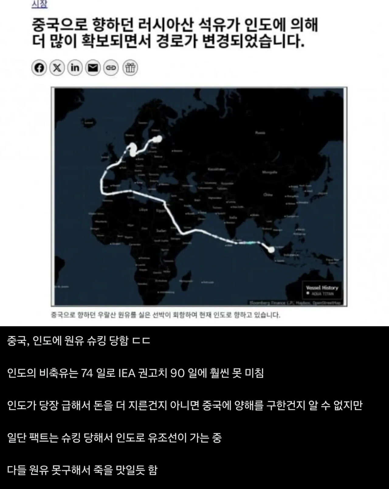 -> 중국으로 향하던 러시아 유조선이 인도로 방향 바꿈