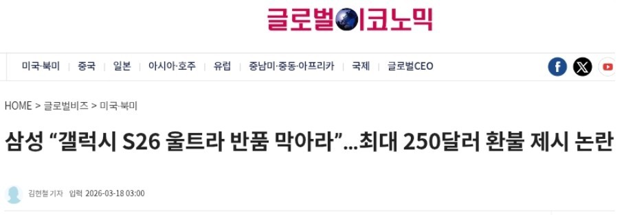 현재 X에서 논란중인 삼성 갤럭시 S26 울트라