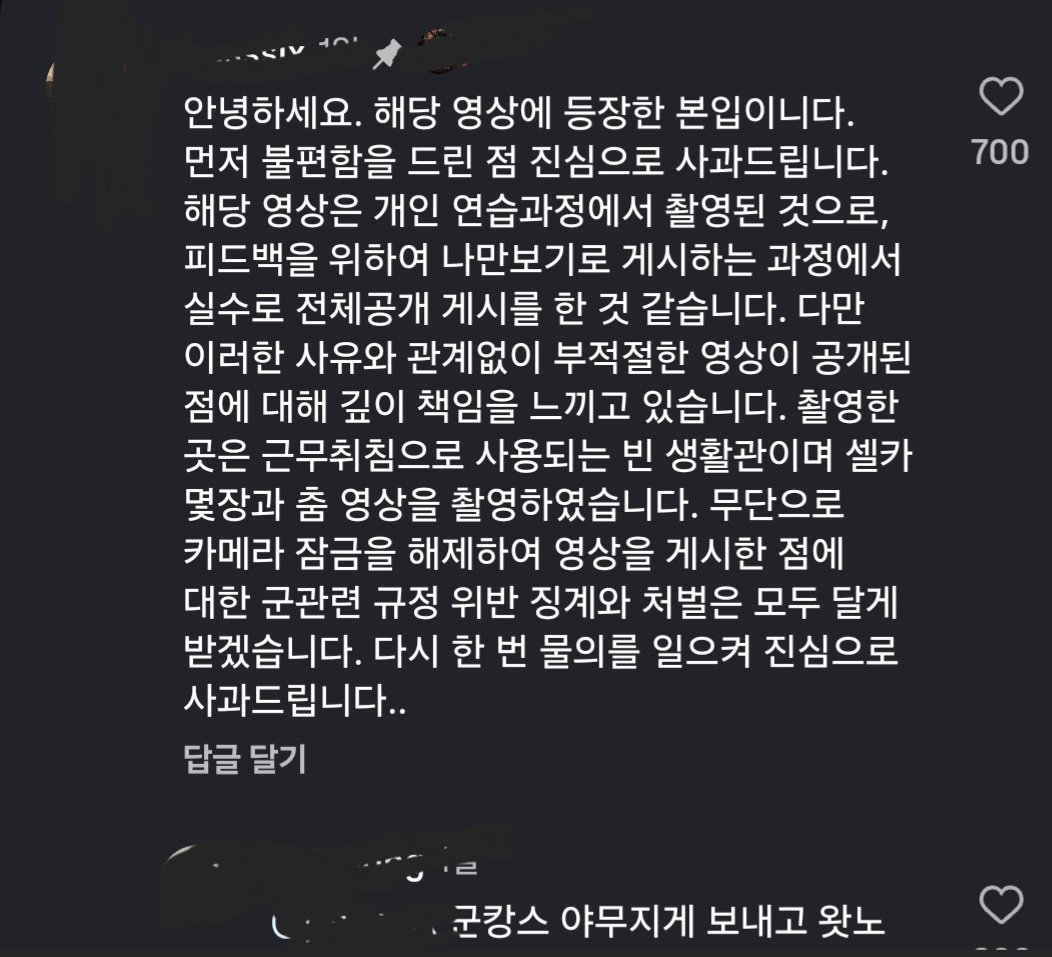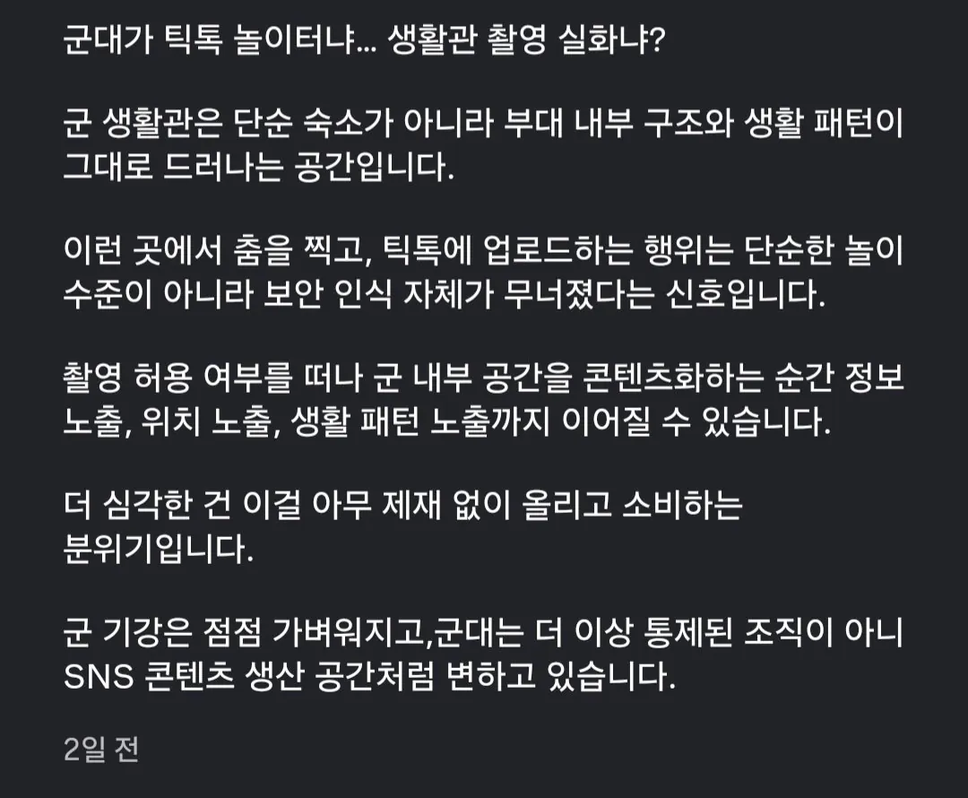 생활관에서 춤추는거 틱톡에 업로드한듯
