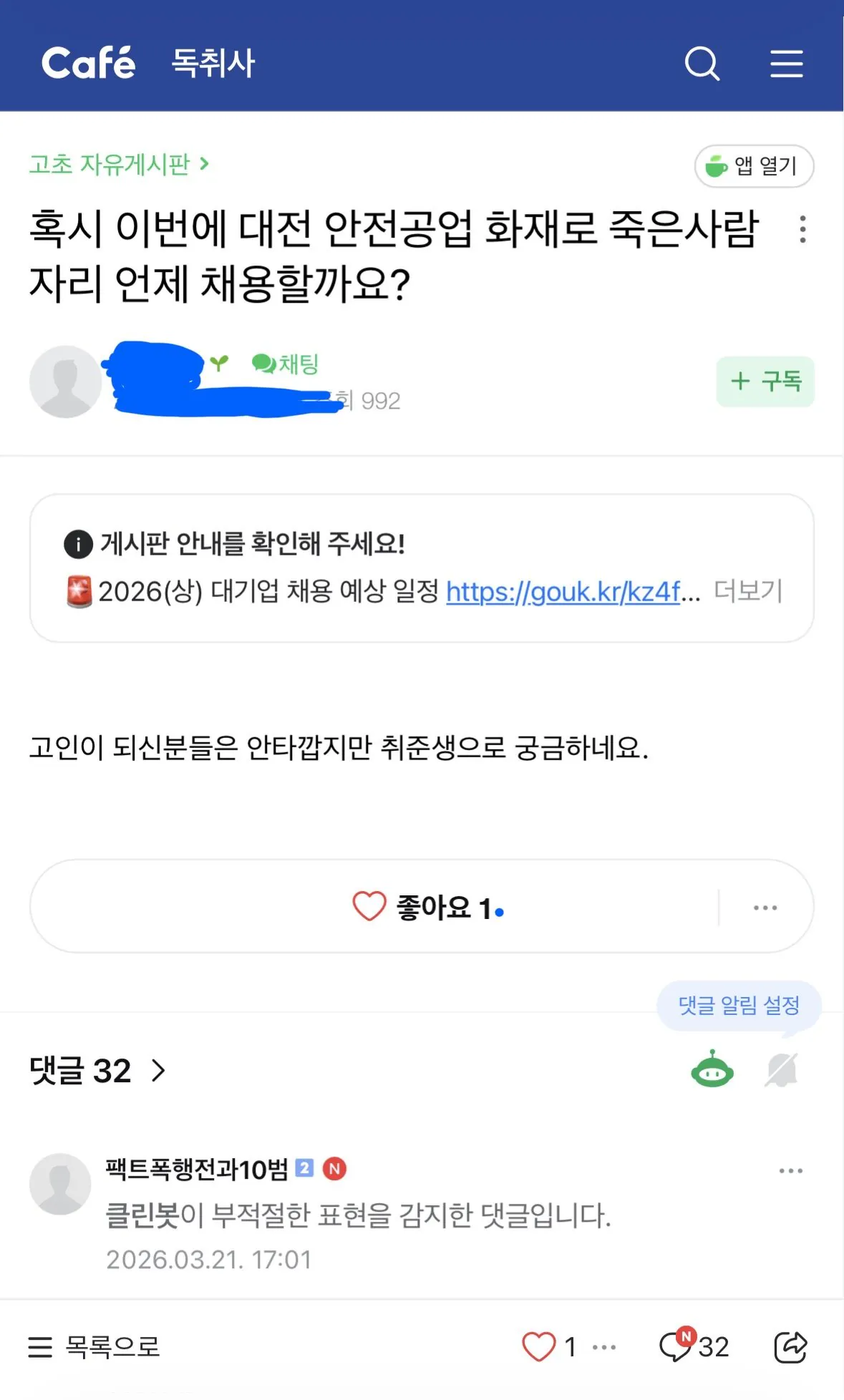 이건 유가족들이 고소 먹여야 할 선 씨게 넘은 독취사 취준생