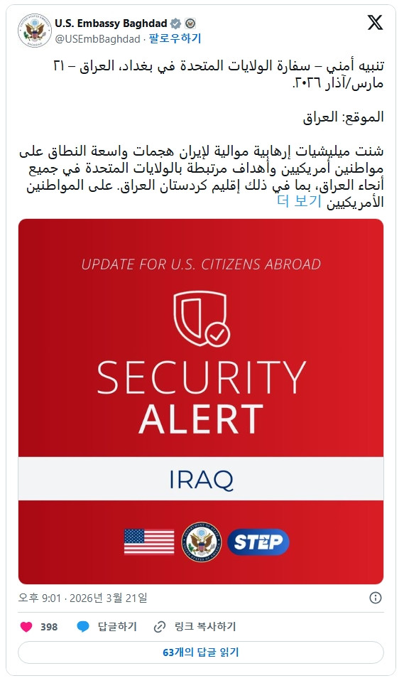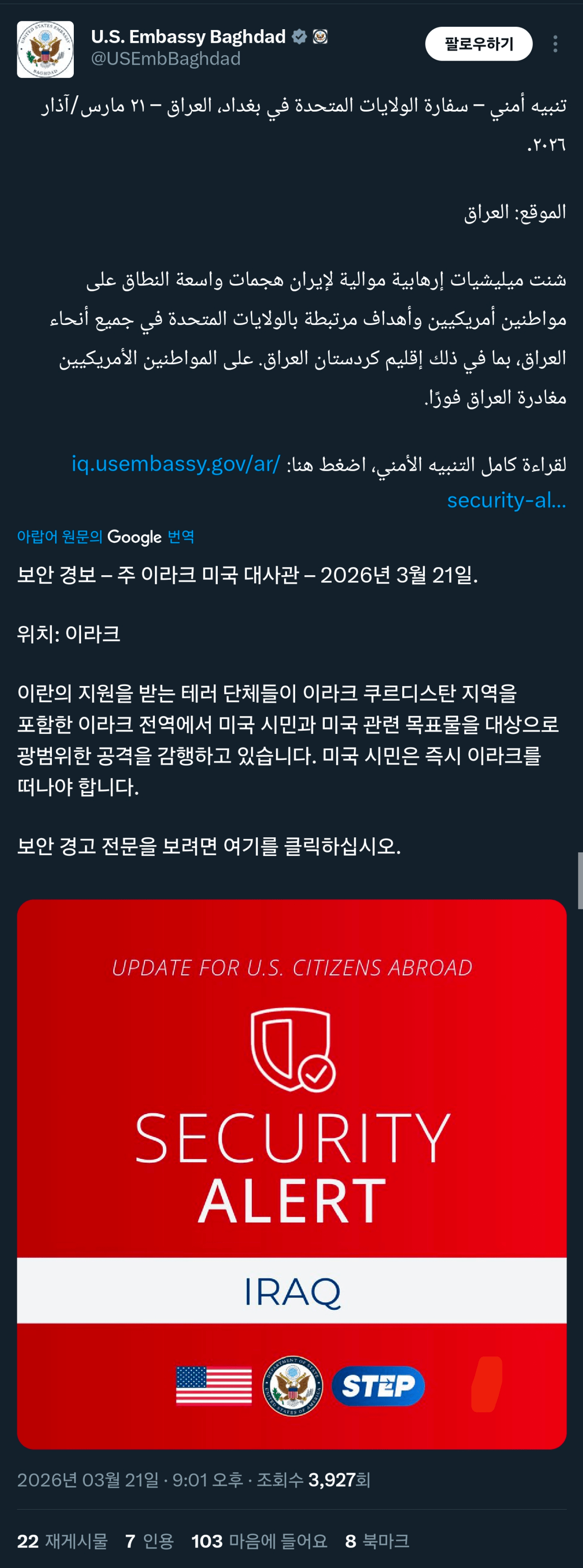 [속보] 미국 : 이라크의 미국인들은 당장 떠나라