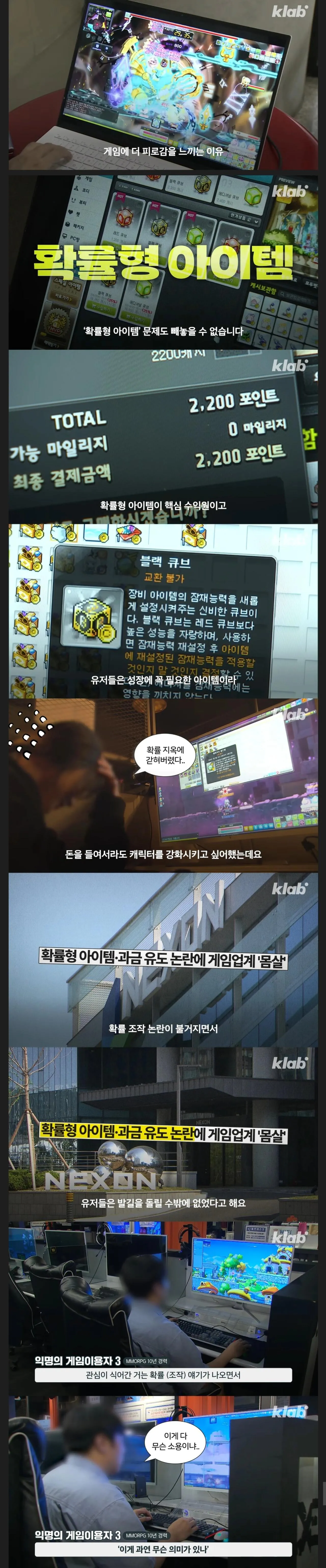 경쟁중심, 확률조작, 노가다에 피로감 느꼈다고 함