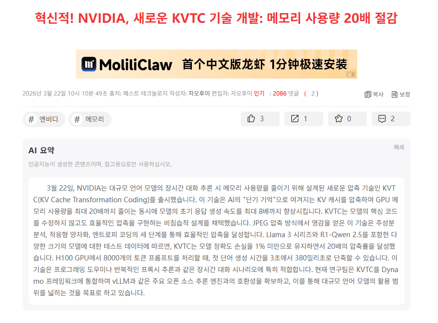 엔비디아, 메모리 사용량 20배 절감기술 개발