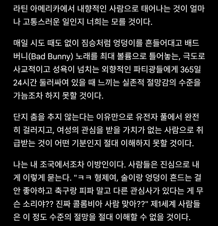 내향적 콜롬비아인의 절규