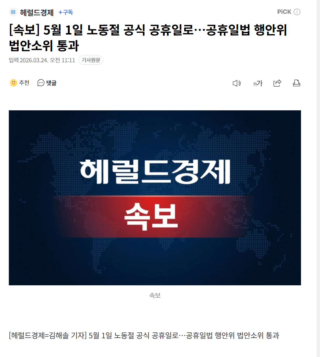[속보] 5월 1일 노동절 공식 공휴일 지정 확정
