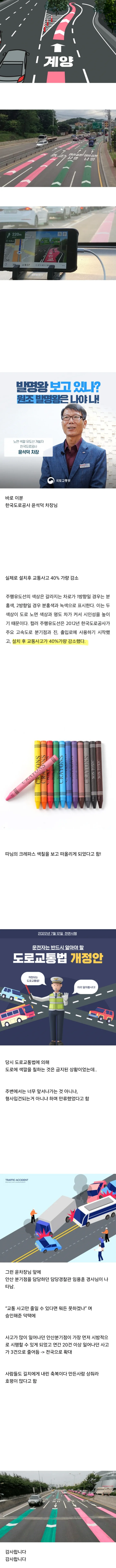 ”잠시후 분홍색 차로로 주행하세요“ 유도선 개발한 공무원
