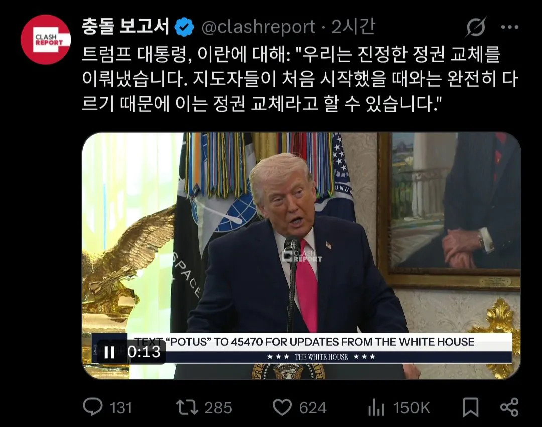 트럼프) "이란 수뇌부 전부 교체됐으니 이건 정권교체"