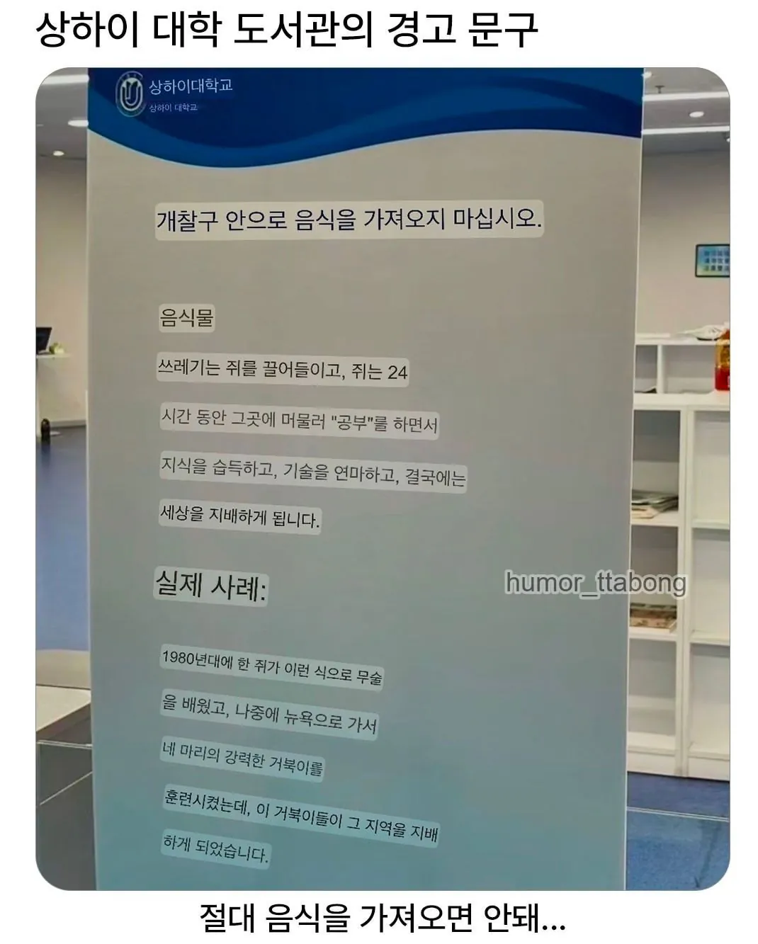 상하이 도서관 경고문