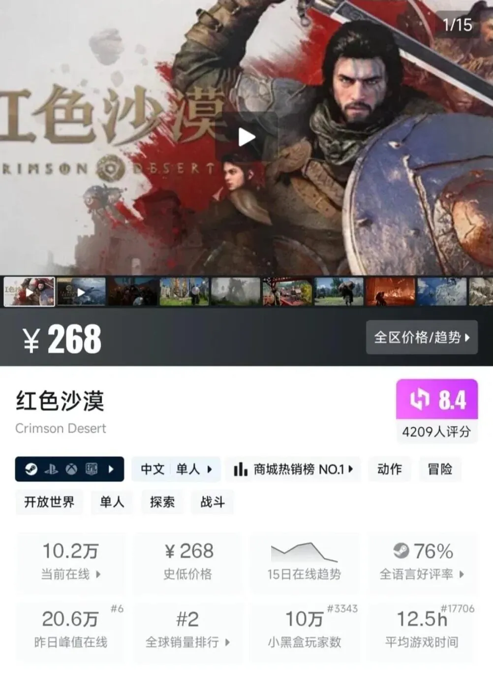 중국 최대 게임 커뮤니티 사이트 '헤이박스(이용자 8천만명 이상)' 에서 붉은 사막 지표가