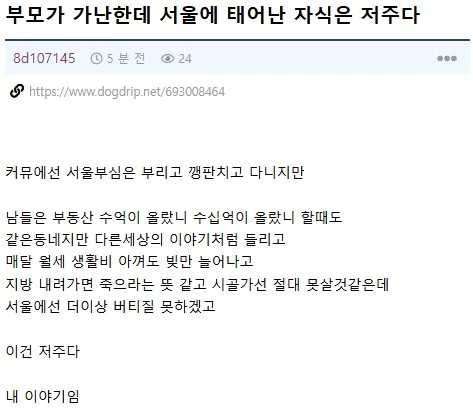 부모가 가난한데 서울에 태어난 자식은 저주다