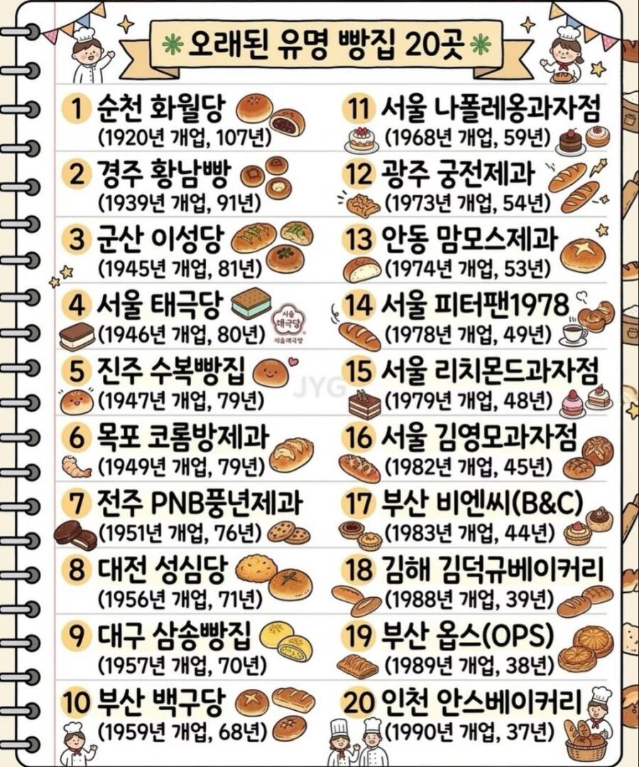 오래된 유명 빵집 20곳