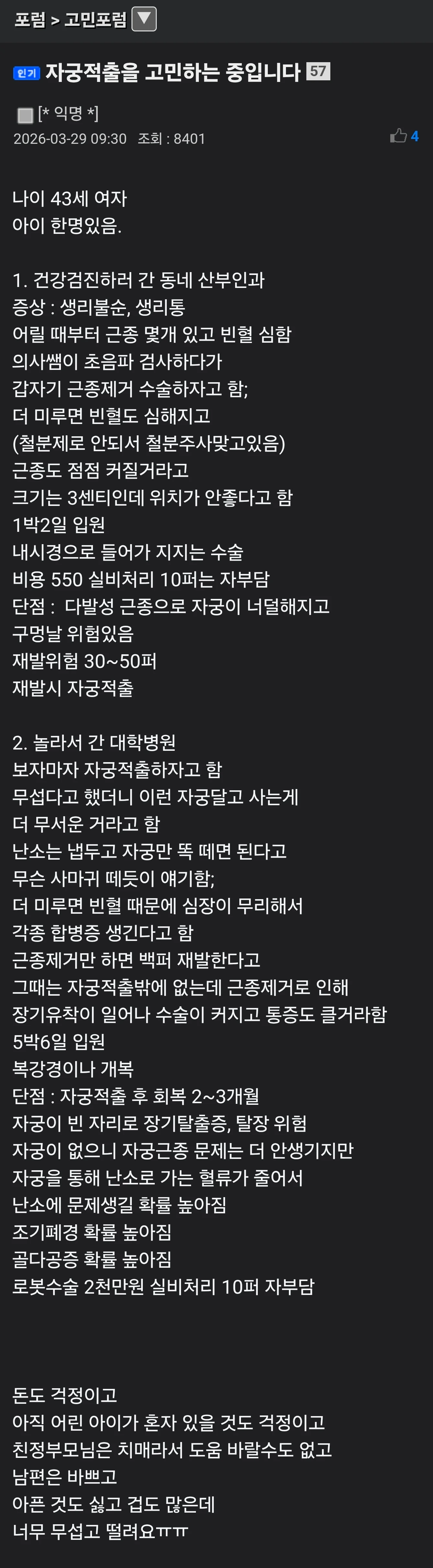 자궁적출을 고민하는 중입니다