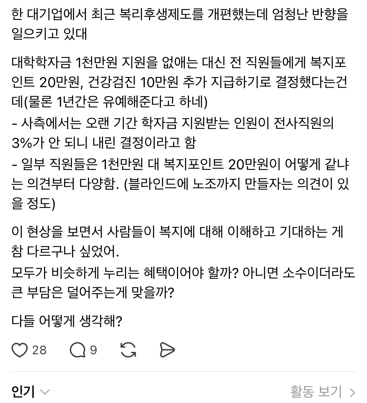 대학 학자금 지원 1000만원 vs 매달 복포 20만원
