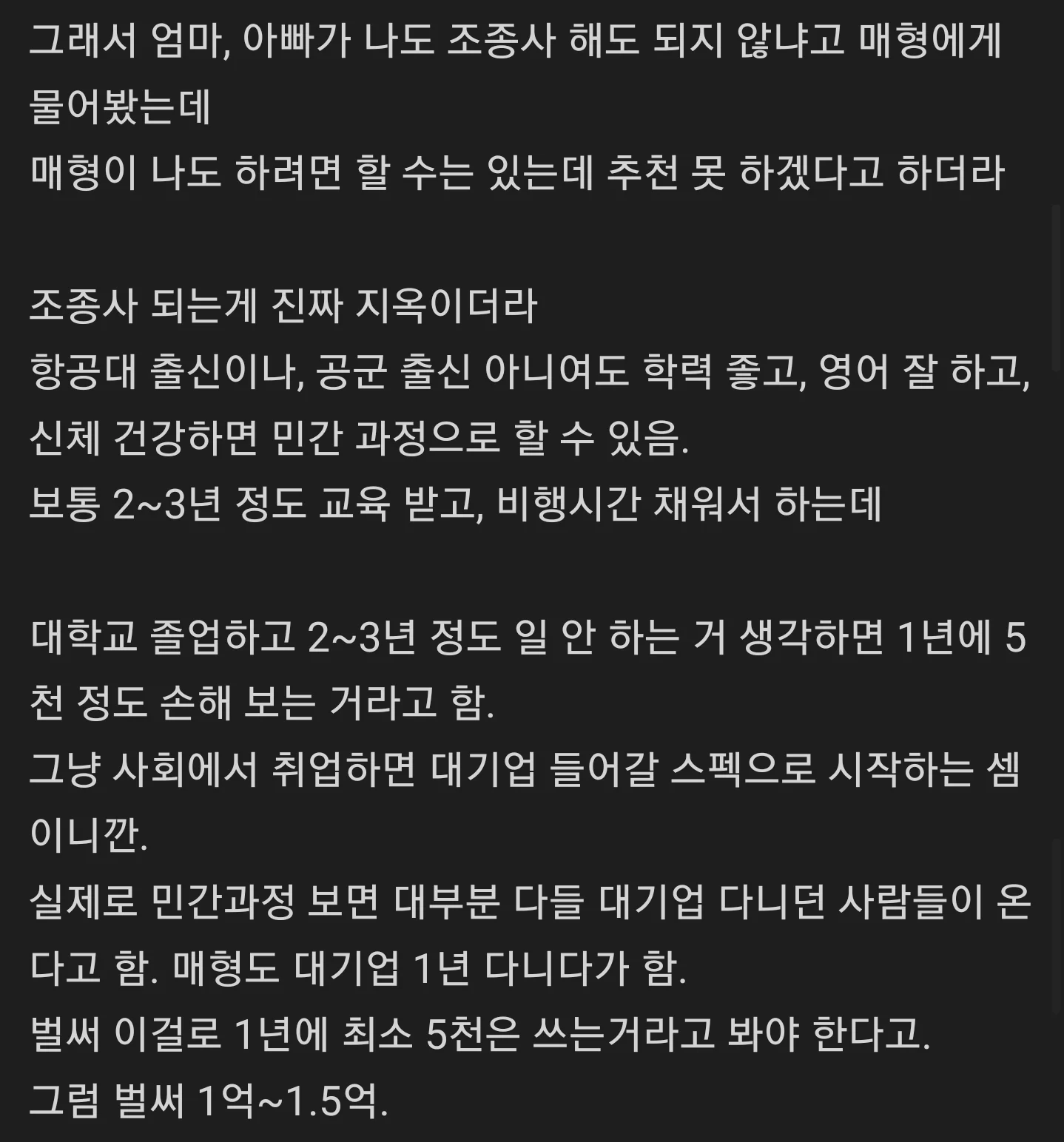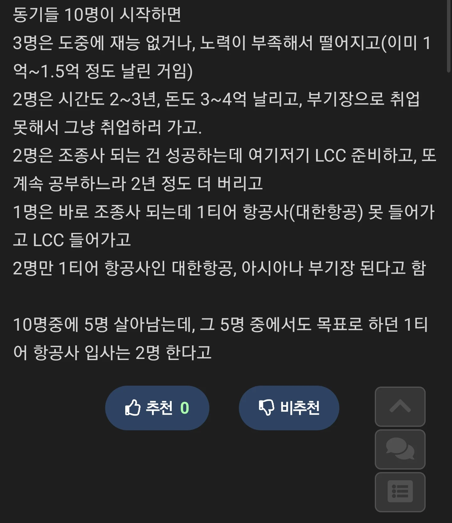 2명 : 조종사 성공 LCC 준비 공부하느라 2~3년 더 깨짐