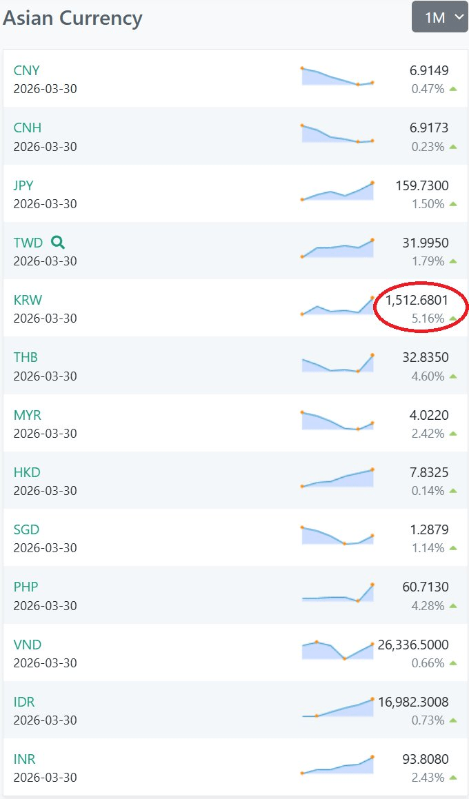 아시아 환율 방어 꼴등 기록중인 대한민국