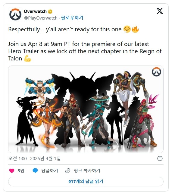 4월 8일 오전 9시(태평양 표준시)에 공개되는 최신 히어로 트레일러를 통해 탈론의 시대가 펼쳐지는 새로운 장을 함께하세요