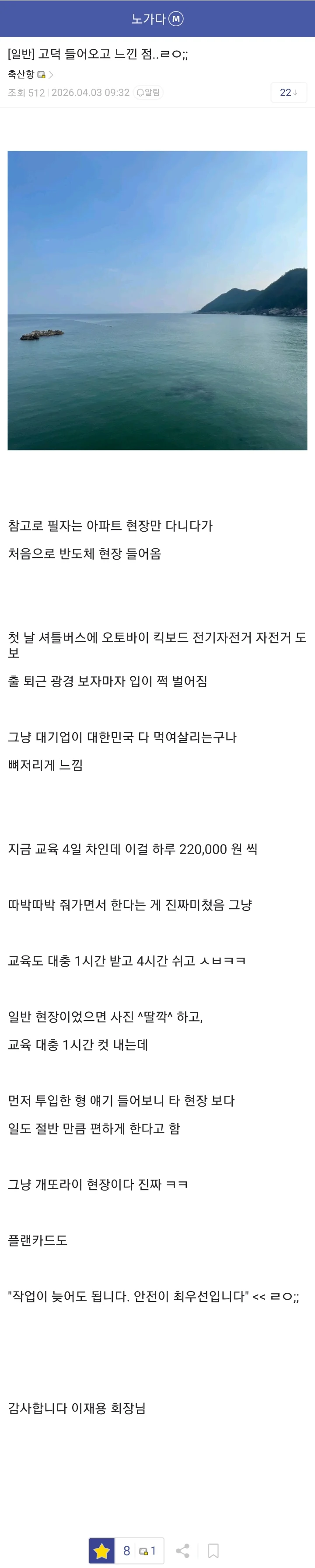 삼성 이재용 회장에게 고마움을 느낀다는 노가다 갤러