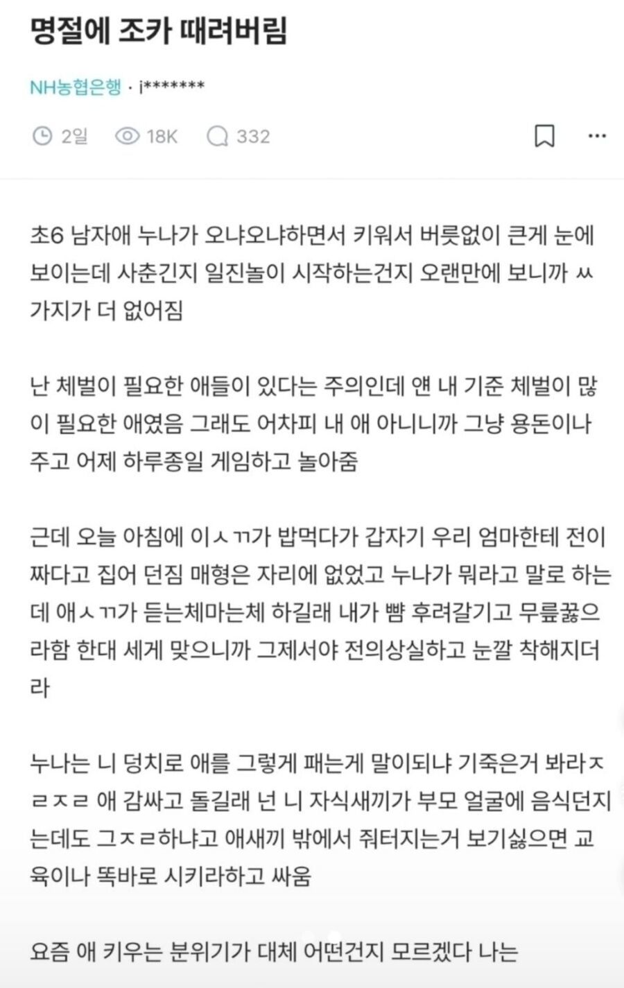 명절에 조카 개패듯 팬 삼촌