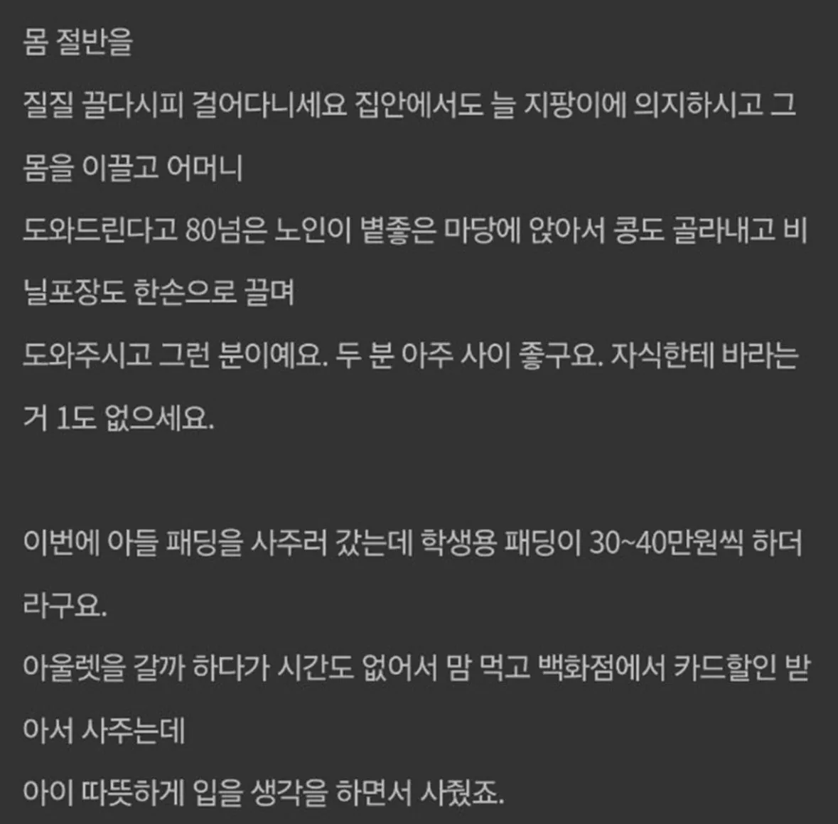 시부모님 패딩 사드렸는데, 표정보고 눈물 날뻔 했어요