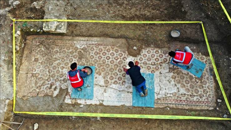 지진으로 파괴된 건물 갈아엎고 공사 하려다 고대 그리스 모자이크 발견