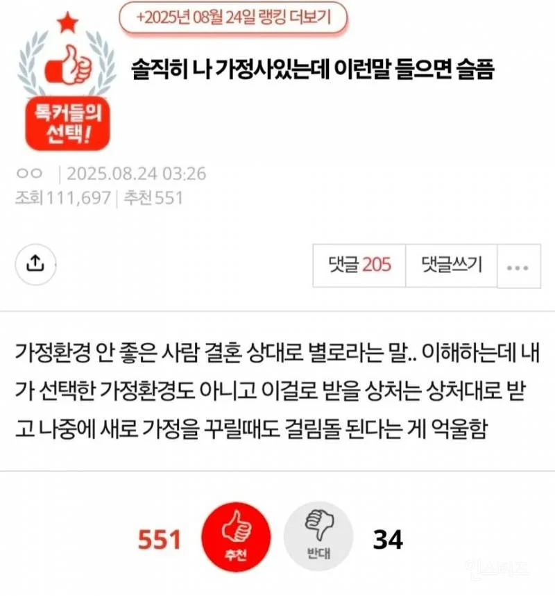나 가정사 있는데 이런말 들으면 슬픔