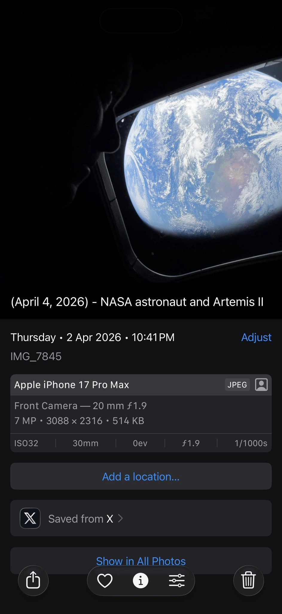 NASA에서 공개한 아이폰으로 찍은 지구 사진
