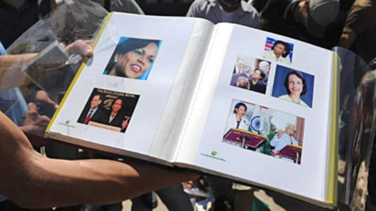 리비아 작곡가가 라이스에게 헌정한 음악 '백악관의 검은 꽃'이란 노래를 배경으로 라이스가 부시, 푸틴, 후진타오 등 여러 지도자들과 함께 찍은 사진들을 모아놓은 영상이었다.