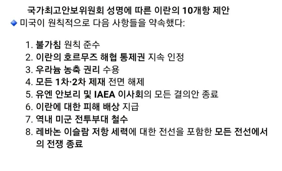 이란이 주장하는 미국과의 합의 사항 ㄷㄷ