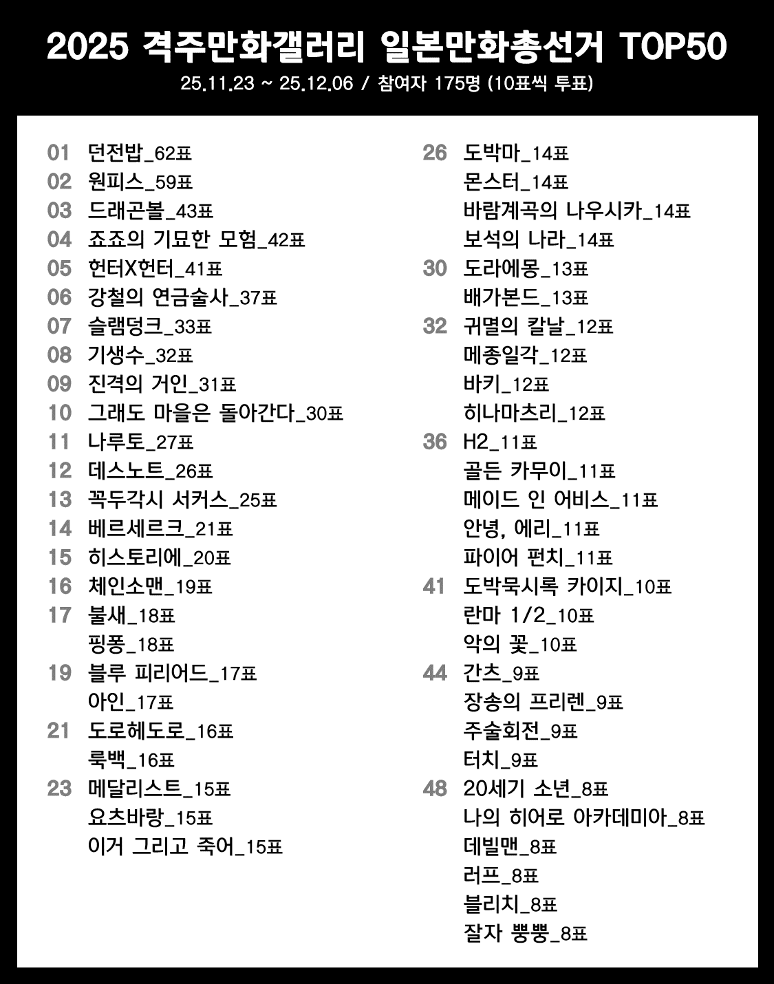 정식 갤러리인 만화 갤러리는 씹창난지 오래라 마갤에서 투표한 결과